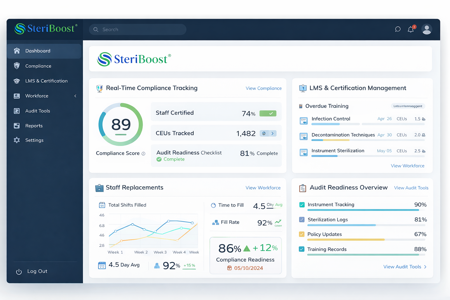 SteriBoost helps healthcare organizations improve training efficiency, compliance readiness, and workforce performance.